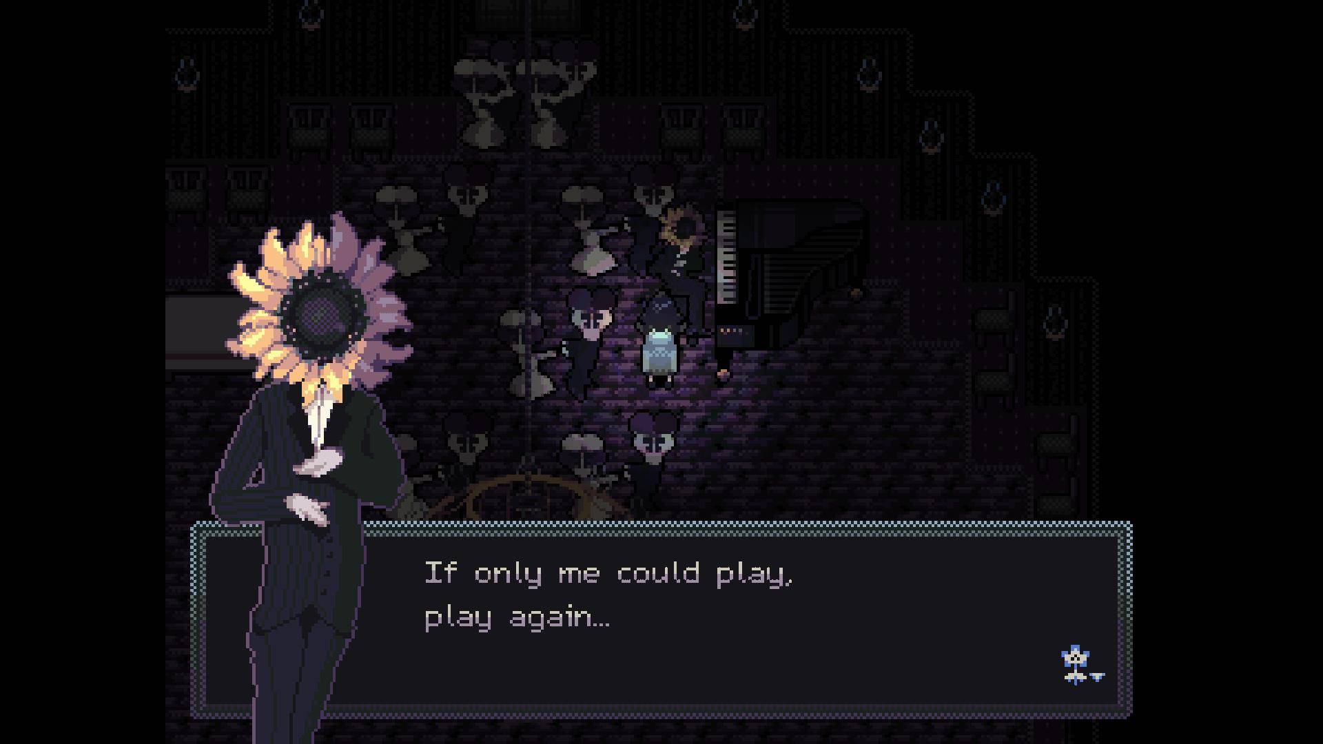 –Forget-Me-Not is a short game involving hidden switches and correct conversational responses, each designed to keep the music playing and the plants from murdering our protagonist.